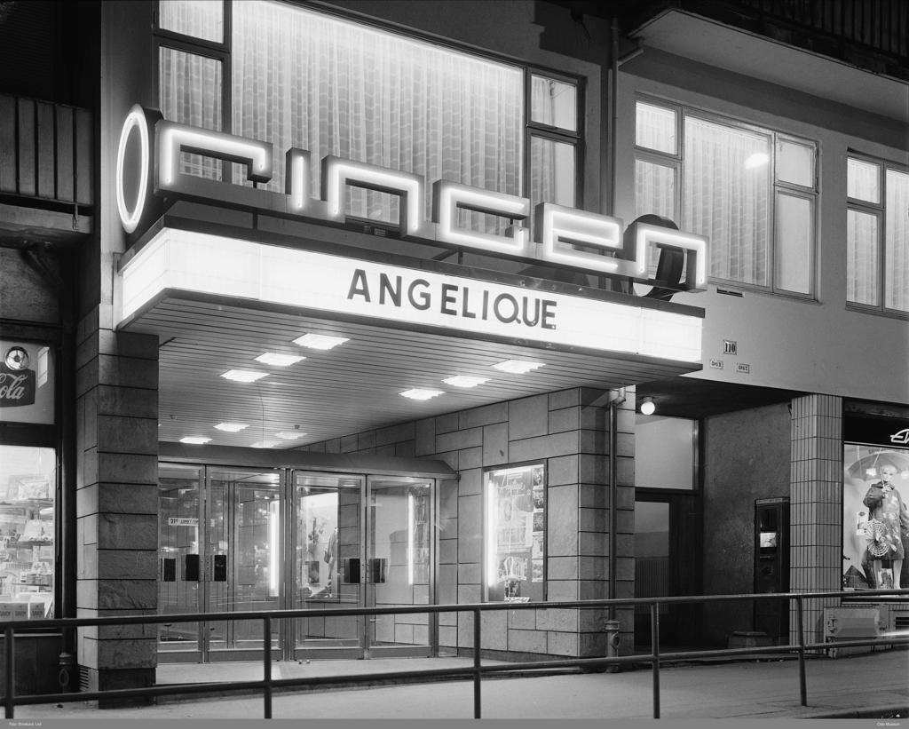 Ringen kino på Carl Berners plass 3. november 1965. Filmen som ble vist på plakatene het "Angelique". Fotograf: Leif Ørnelund. Eier: Oslo Museum.